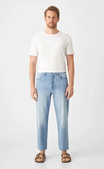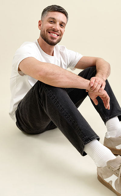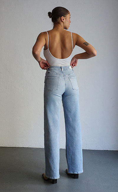 VEGA ist eine locker geschnittene Hose mit mittelhohem Bund und geradem Beinverlauf. Sie sitzt entspannt auf der Hüfte und besteht aus festem Regenerative Minimal Stretch Denim, der seine Form behält und zugleich Bewegungsfreiheit bietet.